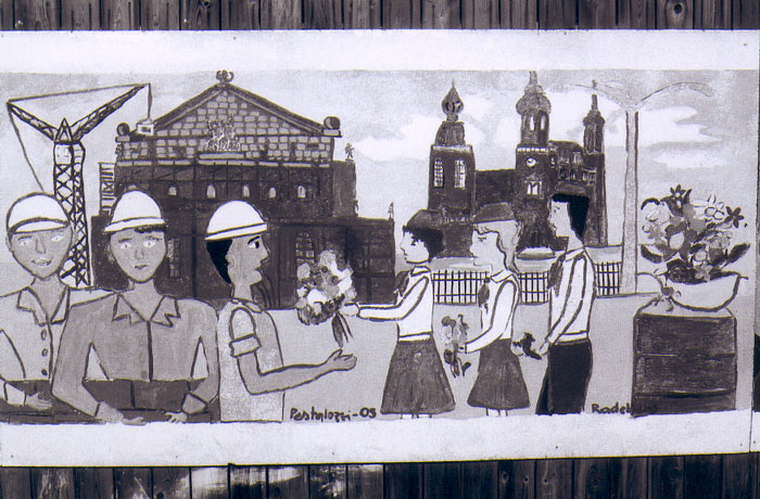 reconstructions aussi, et des dessins d'enfants sur les palissades