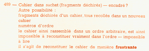 le cahier ainsi rassemblé dans un ordre arbitraire, est ainsi